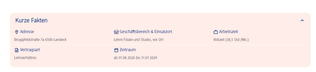 - Die Bewerbung für Jugendliche mit Unterstützungsbedarf direkt an die Recruiterin/den Recruiter senden, die bei dieser Lehrstelle angegeben ist.