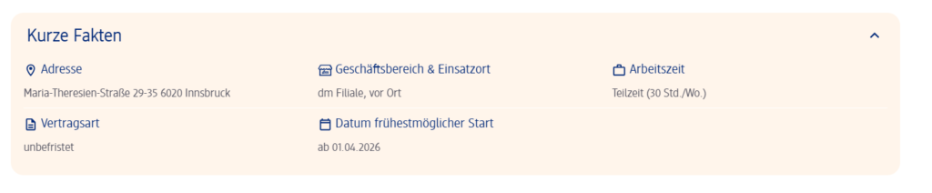 - Sicherheit: Sie erleben in dm einen krisensicheren Arbeitgeber – vom korrekten Abrechnen bis zum pünktlichen Gehalt.